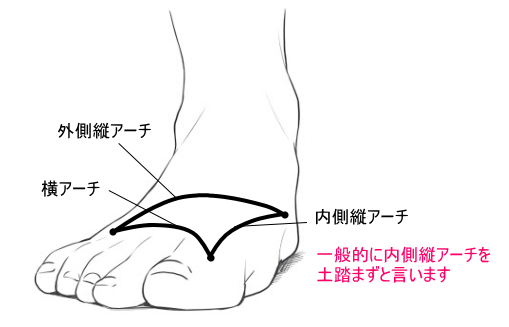 1️⃣ 内側の縦アーチ(土踏まず) – いちばん大きなアーチで、衝撃吸収の中心。